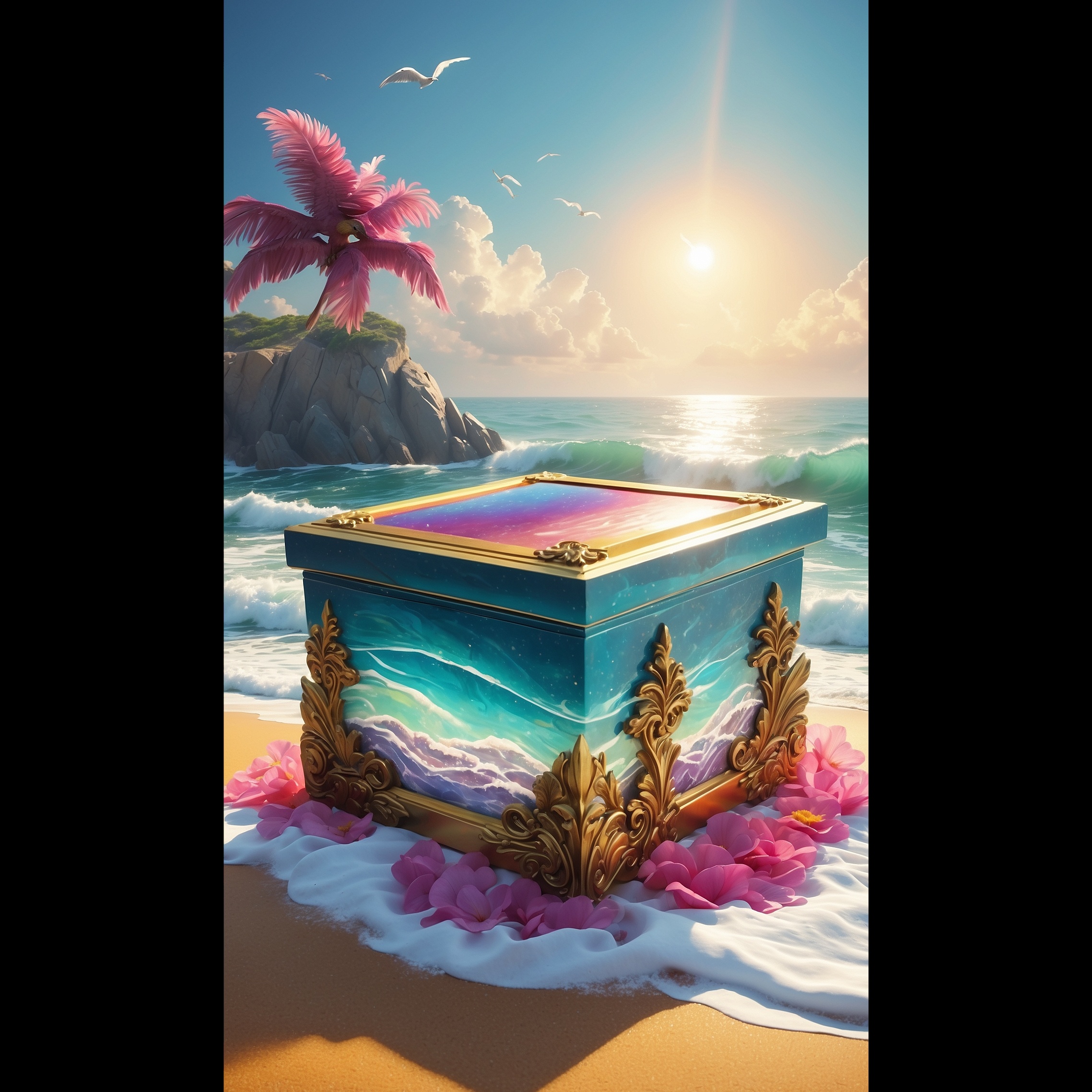 ~90 bpm, beats, funky, trip-hop, seagulls), nostalgic, scratchy guitar licks, jazzy piano loops, adventurous, jazzy, vinyl crackle, boom-bap drums, ambient coastal sfx (waves, summer heat, organic beats, ambient, cinematic, funk, sampled horns, laid-back