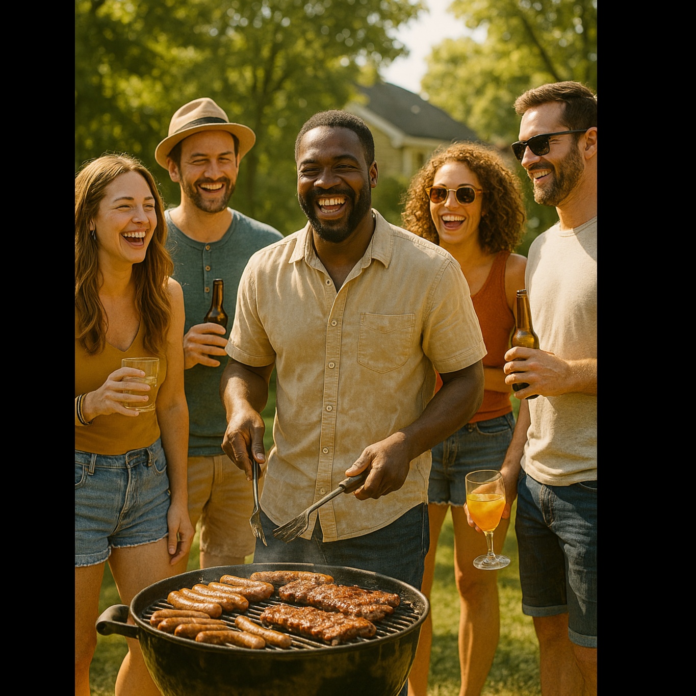 A feel-good, summer hip-hop track with smooth, nostalgic R&B melodies and funky basslines, Think 90s vibe meets modern polish that is sunny, chill, and groovy, Laid-back rap verses with a catchy sung chorus, full of warm summer imagery, block party vibes, and a relaxed, joyful energy, Perfect for cruising with the top down or dancing barefoot at a barbecue, ‑rock, ‑musical, ‑sea shanty, ‑country, ‑classical, ‑punk, ‑sad ballad
