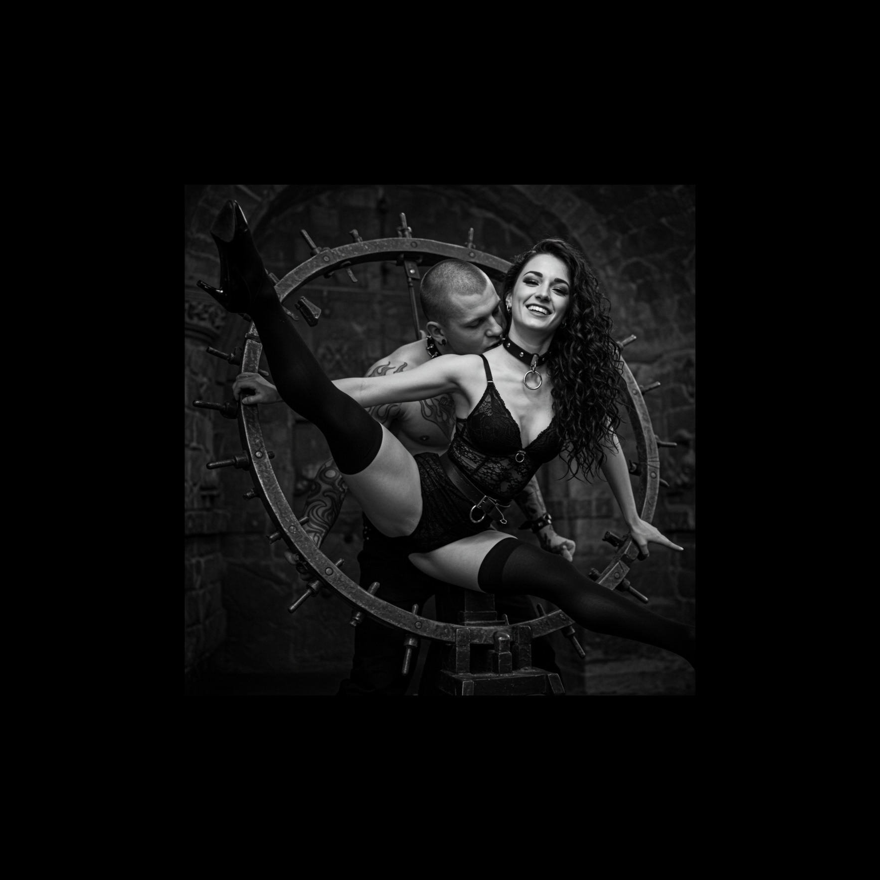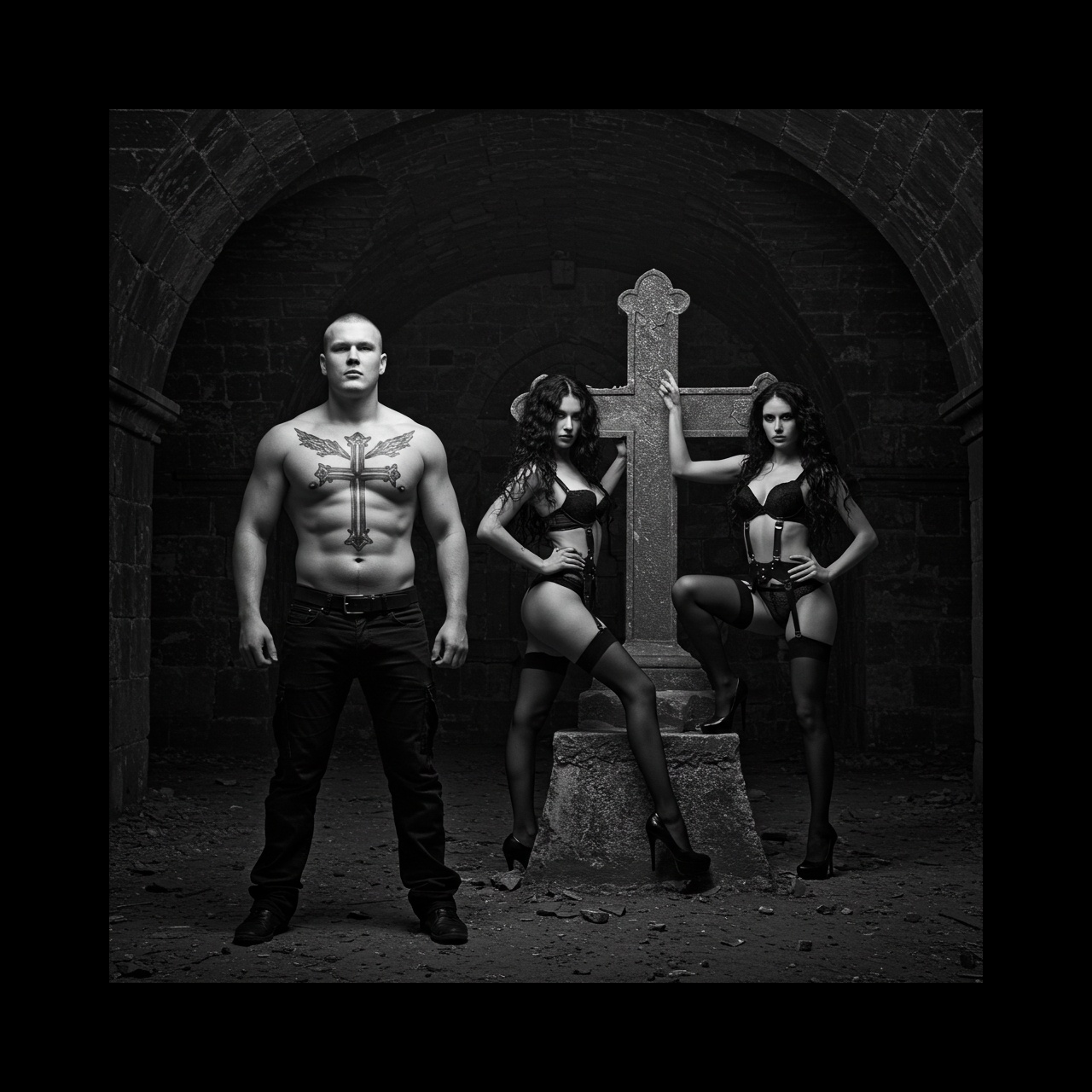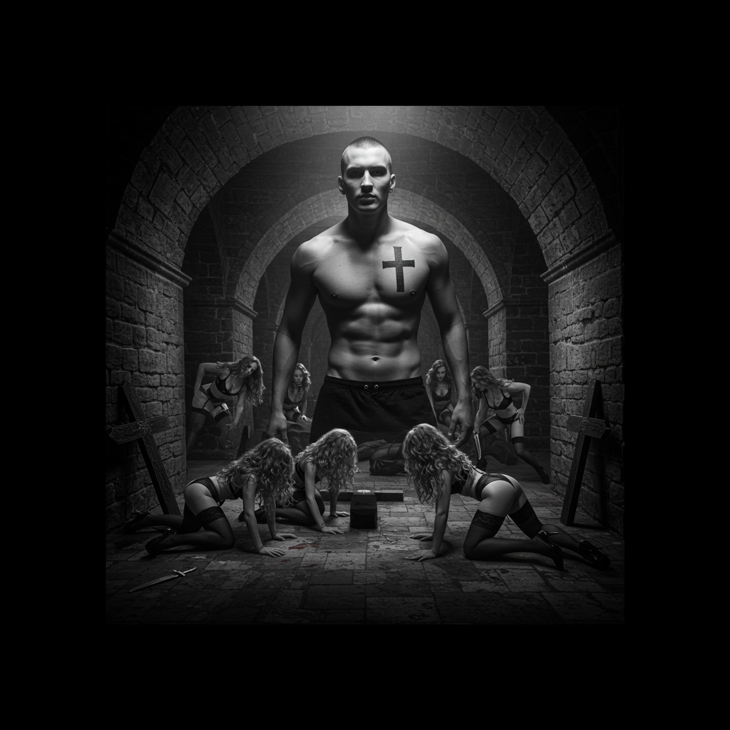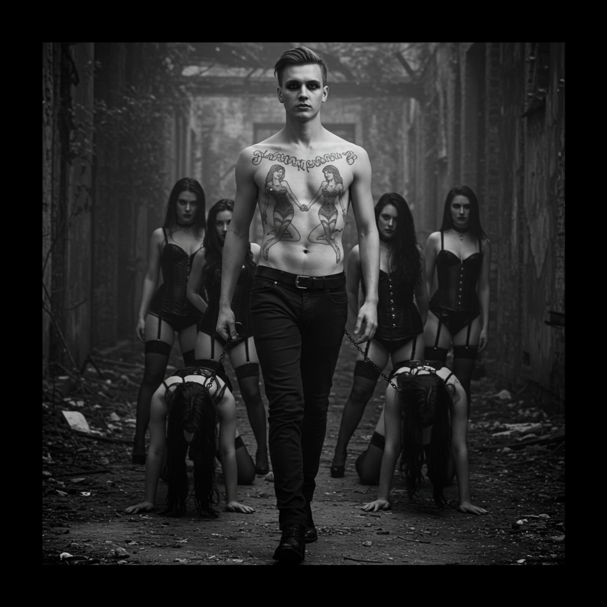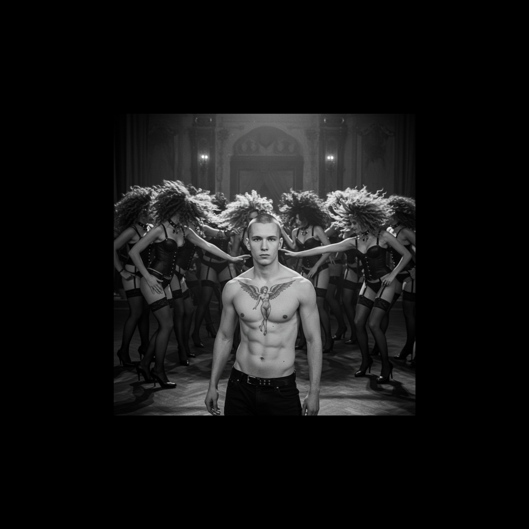 EBM Song, Gothic, can can alike rhythem, deep, dark, male voice, distorted synths, bassline, driving drumbeats, epic heartbeats, aggressive voice