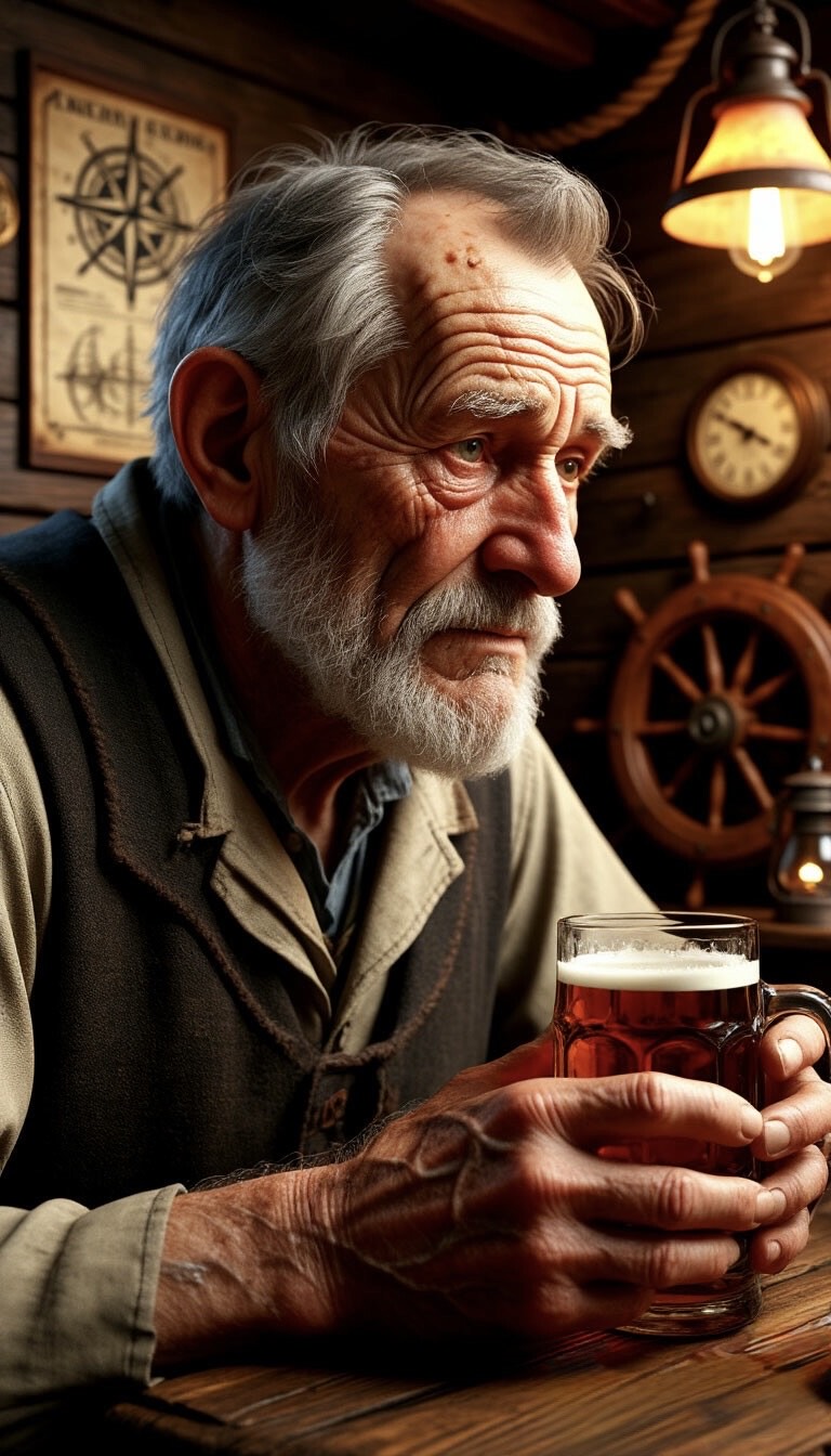 ballad, deep baritone, emotional, acoustic, theatrical pauses, harsh, deep, strong, tavern atmosphere