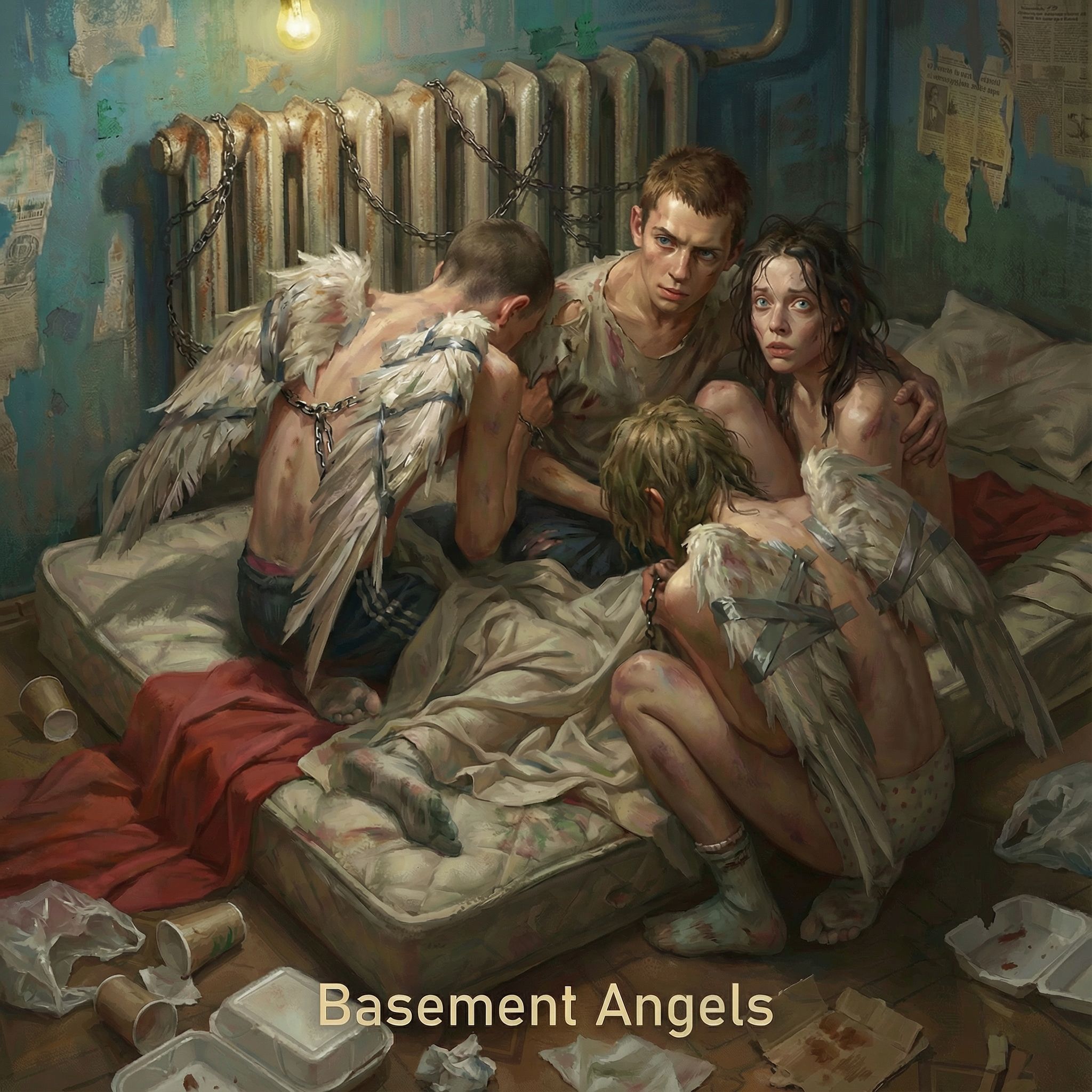 Industrial trip-hop, post-punk minimalism, claustrophobic interior acoustics, slow tempo, arhythmic phrasing, female vocal lead, low alto register, constrained dynamic range, controlled breath, no breathy softness, no vibrato, emotionally neutral delivery, narrow melodic span, late entrances behind the beat, fragmented phrasing with pauses, silence foregrounded, no pitch correction, no quantization, narrow mono image, dull short reverbs, concrete room reflections, reverb arrives after words then cuts off, subtle electrical hum drift, irregular pipe knocks, fabric and vinyl movement noise, muted sub bass presence, detuned pads with low harmonic density, restrained ghost-choir fragments mixed barely audible, choir avoids harmony resolution, fatigue-first performance, anti-beauty vocal treatment, no emotional lift, unresolved ending, hard cut outro