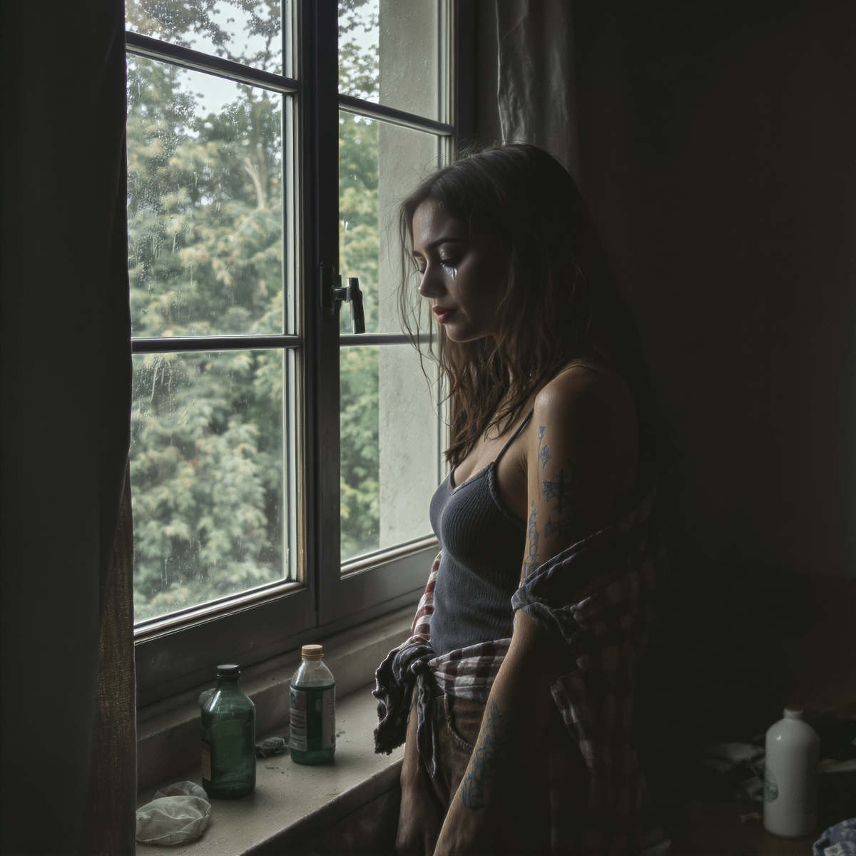 A stripped-down, unplugged acoustic track in the style of a UK blues singer-songwriter, Features a contralto female vocal with a smoky, emotional, and soul-worn delivery, The performance is intimate and raw, with fingerpicked and lightly strummed acoustic guitar at the core, Subtle background melodic humming vocals float in and out, creating a haunting, supportive atmosphere, The mood is dark, introspective, and powerful, yet ultimately inspirational, like finding light after a long night, Focus on organic textures, minimal production, and space for the voice to shine, Think dimly lit room, one take, real and unfiltered