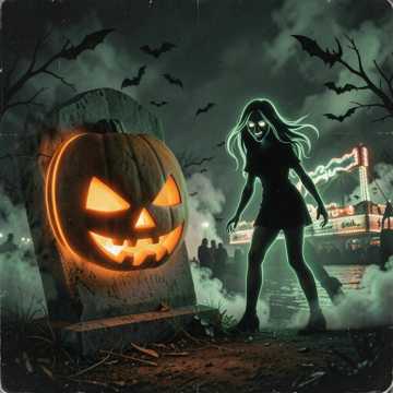 distorted bass drops, creepy vibes, haunted, eerie organ, eerie echos, eerie syths, distorted electric syths, trance eerie pop, nightmare version, electric guitar, bass, drums, distorted electric guitar, horror-pop/rock, alternative emo, eerie female vocals
