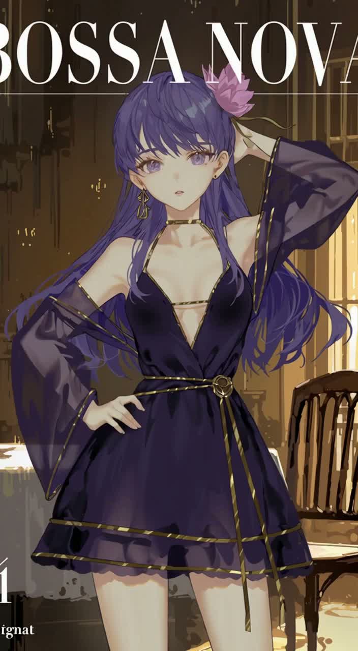 Kawaii Vocaloid, late-night bossa nova, smooth jazz noir, dim warm lights, nylon guitar slow syncopation, upright bass soft and deep, brush drums slow swing, electric piano Rhodes mellow, ambient rain outside, quiet cafe atmosphere, Kawaii Vocaloid humming, slow tempo 82-88bpm, velvet darkness mood, cozy lonely warmth, soft natural reverb, candlelight reflections