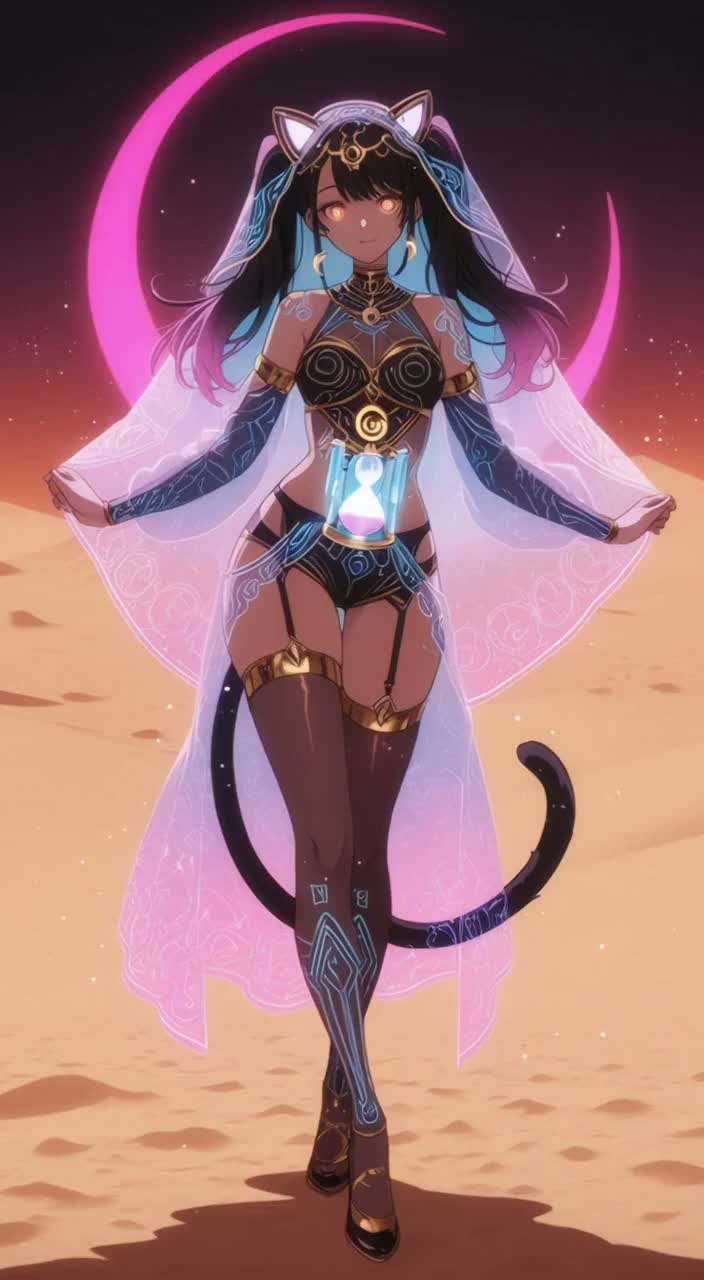 Hyper K pop, Ethno Trap, Sexy EDM, R&B, Moroccan Night, Exotic playful flirtatious kawaii coy female Vocaloid, bubbly voice, Arabic Scale, Deep Sub Bass, 108-124bpm, Cinematic, Emotional, Mirage, Desire, Neon Desert, Heat & Shadow