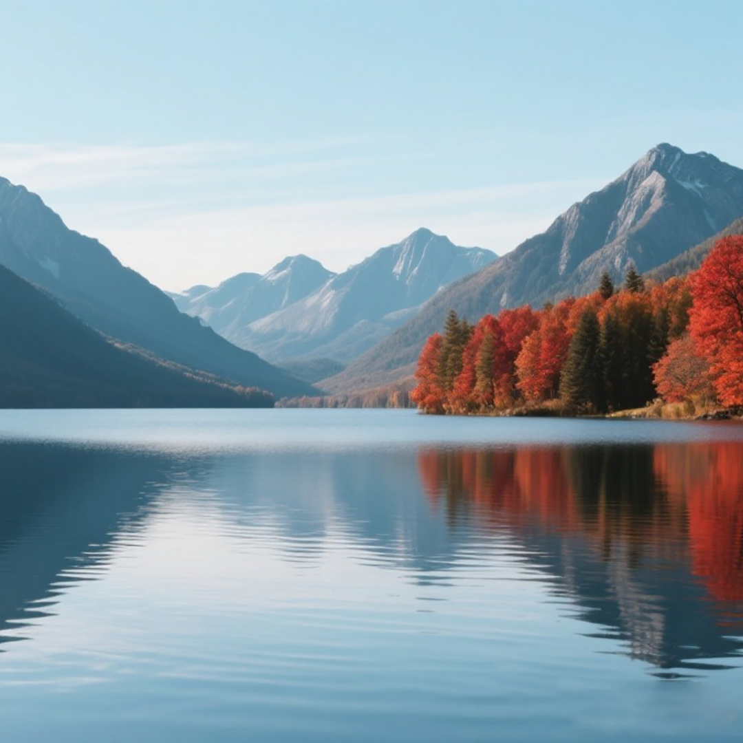 The sound tracks should be at least four minutes long, Peaceful ambient New Age instrumental inspired by the stillness of a clear mountain lake, Featuring soft ambient piano melodies, gentle string pads, light cello drones, and subtle nature textures like distant birdsong and calm water ripples, Slow tempo, meditative, reflective mood, Optional use of Chinese erhu for soft melodic accents, Serene, flowing, and emotionally calming, Intro: Water sounds + birdsong + ambient pads provide the foundation, Main Theme: The piano melody slowly enters, simple and repetitive, Layering: Cellos and strings subtly join in, creating layers of depth, Bridge/Break: All instruments briefly fade out, leaving only the water sounds and piano, Outro: Returns to the water waves and a final piano chord