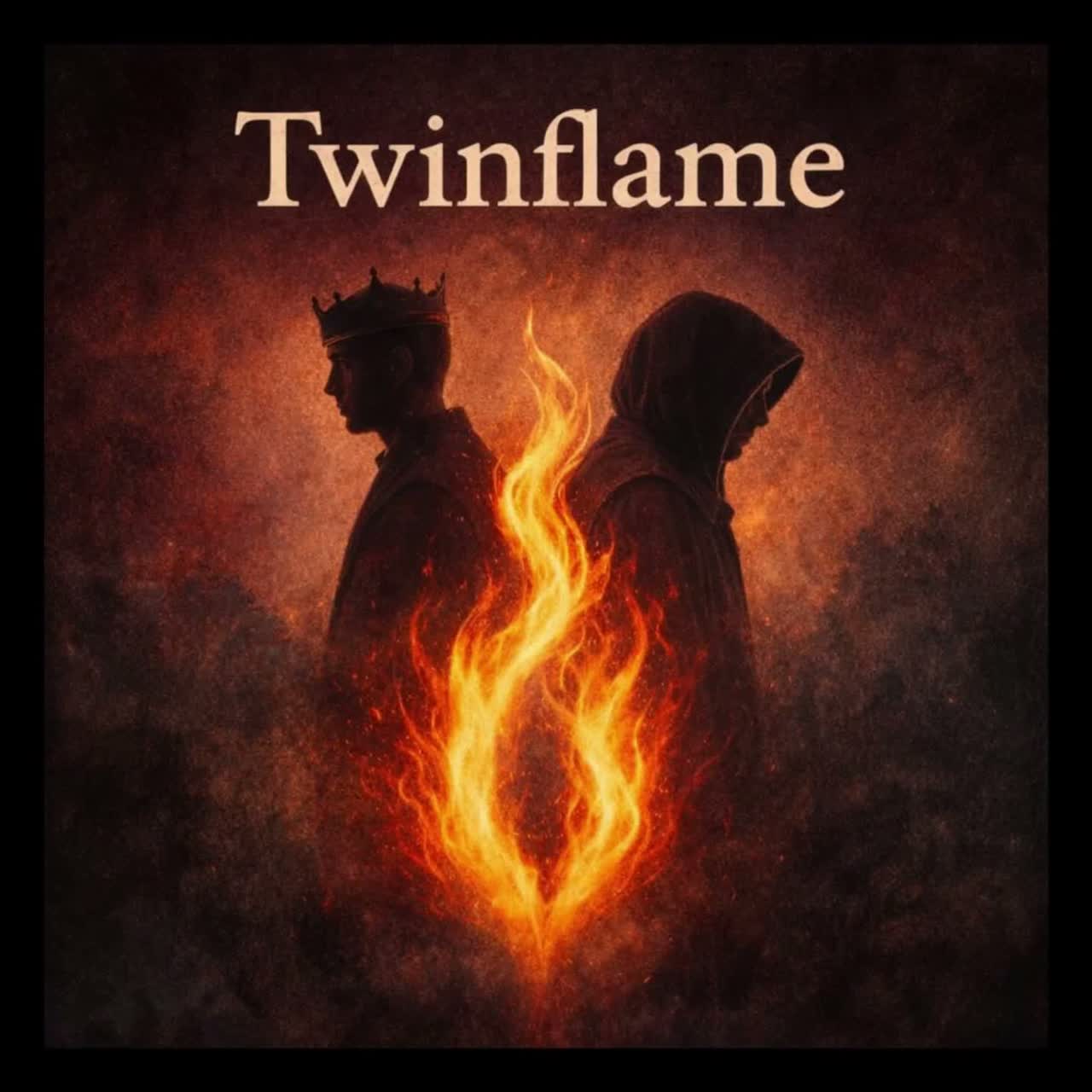 Create a 4-minute haunting minimalist folk track, 'Twinflame, ' Theme: the internal duality—ego and soul, forever bound, forever in friction, MUSICAL VIBE: Haunting minimalist folk, Single fingerpicked acoustic guitar, spacious and intimate, Cello enters like a second voice—warm, aching, conversing with the guitar, Two instruments, one track, never resolving, Production feels raw, live, like a late-night recording in an empty room, VOCAL STYLE: Male, Jett Protocol energy—calm, observant, accepting of the friction, Verses conversational, intimate, Chorus opens slightly, Bridge builds, Outro spoken, reflective, over fading cello, STRUCTURE: