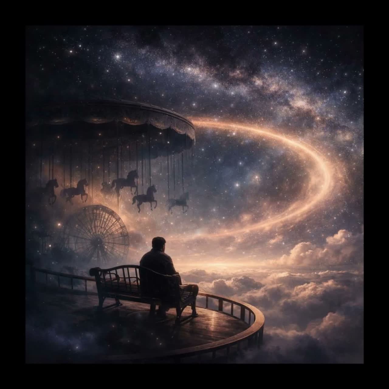 Create a 4-minute cosmic folk track, 'The Invisible Ride, ' Jett Protocol — calm, cosmic, observing the soul's cycle, MUSICAL VIBE: Cosmic folk, Fingerpicked acoustic guitar with reverb, Warm, drifting synth pads underneath, No drums, Space between notes, Feels like watching stars from a quiet hill, VOCAL STYLE: Male, Calm, cosmic, detached but warm, Jett Protocol — like narrating a dream you've had before, Verses conversational, chorus opens gently, bridge intimate, outro spoken, STRUCTURE: