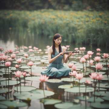 slow, magical, lower register, etheral female vocals, layered harmonies, acoustic guitar, fiddle, flute