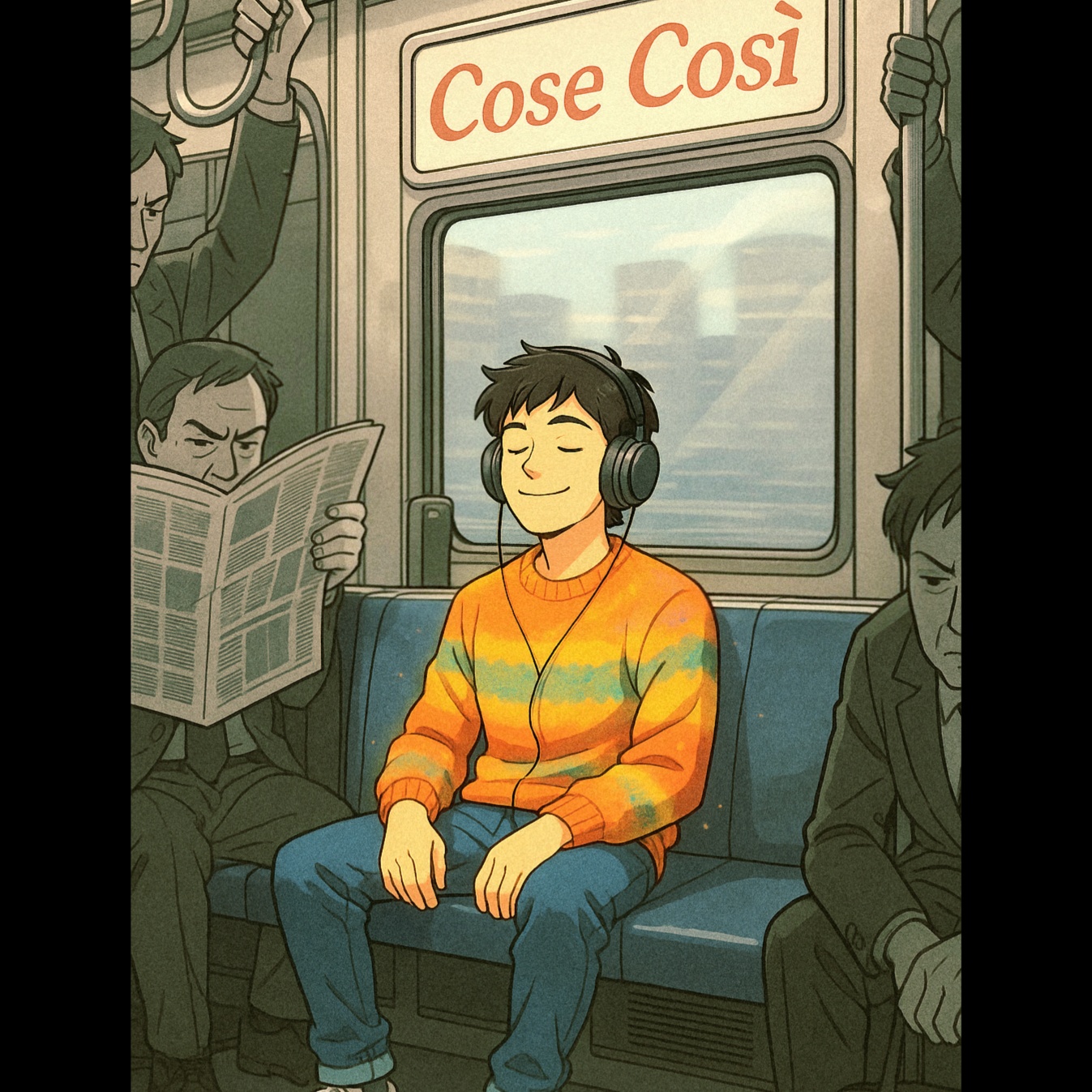 Clear, velvety male vocals with a relaxed, storytelling tone, Song is jazzy house track, smooth and intimate, capturing the feeling of putting headphones on, Instrumentation blends mellow jazz elements — brushed drums, muted trumpet, electric piano, upright bass, light saxophone fills — with warm acoustic Italian guitar strumming, adding an organic Mediterranean touch, The groove is laid-back but rhythmic, balancing jazzy sophistication with house beats, Vocals should feel natural, expressive, and slightly playful with subtle ad-libs, conveying hazy memories and lighthearted nostalgia, Atmosphere is breezy, nostalgic, and carefree, The arrangement smoothly shifts between flowing verses and catchy, easy choruses, keeping the energy mellow yet engaging, Ad-libs in the final sections are stylish and warm, enhancing the intimate vibe, clear and velvet males vocals
