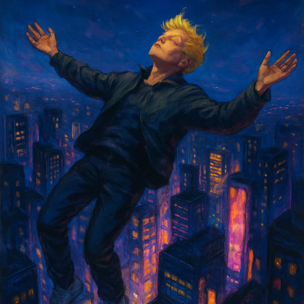 A dreamy jazz-house track with ambient textures and soft, expressive male vocals, Smooth electric piano and vinyl crackle blend with mellow saxophone and deep house drums to create a floating, late-night atmosphere, The structure is hook-driven, skipping traditional verses in favor of hypnotic refrains and melodic repetition, The vocal tone is introspective and spaced-out, with emotional ad-libs and echo phrases that feel like drifting through the sky, The energy stays low and immersive, evoking a sense of falling in slow motion through darkness and light, Jazzy elements subtly support the beat without overpowering it, maintaining a lo-fi, electronic flowstate, Perfect for a vibe that’s both lonely and calming, like wandering through a dream at midnight