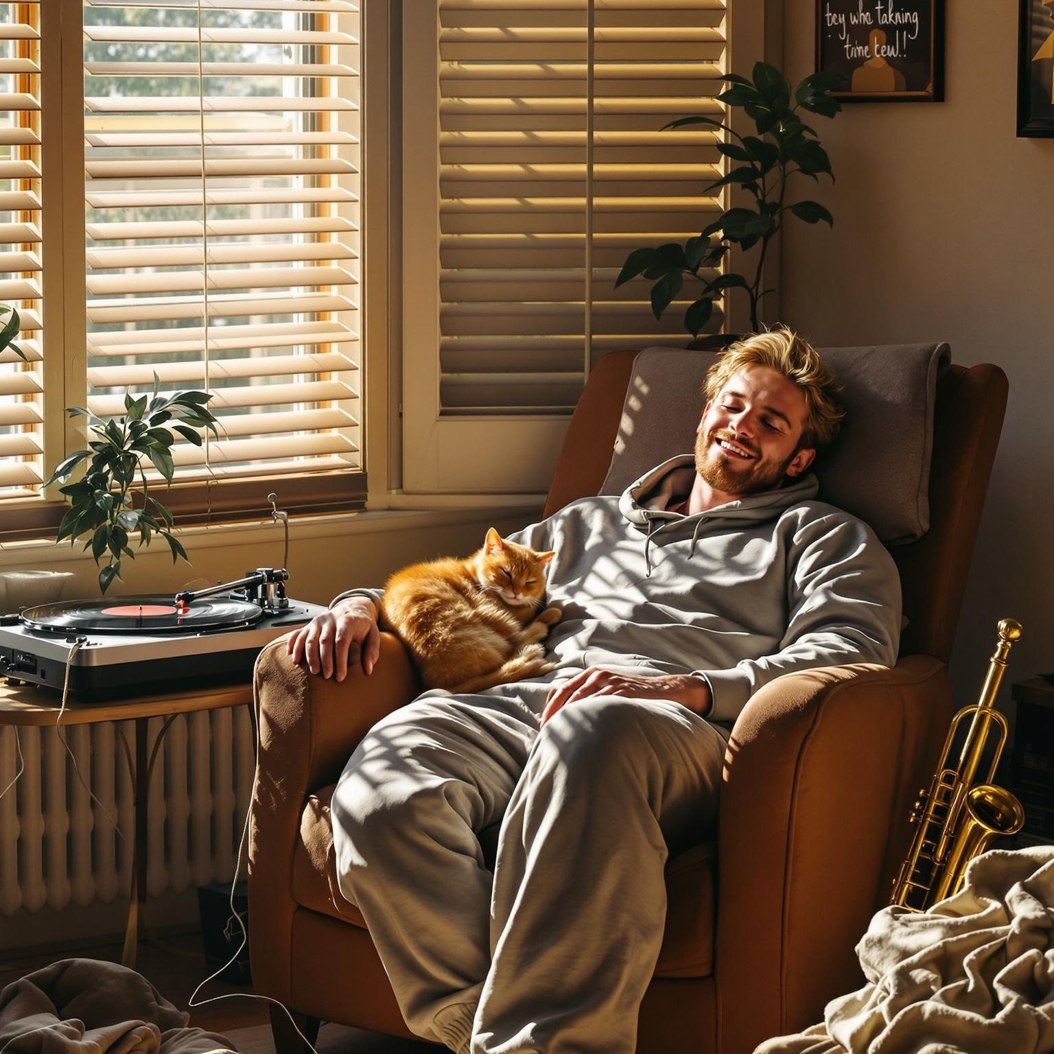 Clear male vocals with smooth, warm tone and subtle jazzy inflections, Deep house beat with soft jazz piano chords, muted trumpet accents, and gentle double bass, Production is spacious, clean, and modern, with a relaxed tempo around 105 BPM, Vocals delivered confidently with playful, casual attitude, capturing the mood of doing nothing and enjoying a lazy day, Includes light vocal riffs, echoes, and ad-libs for expressive texture, The style blends chill house groove with jazzy instrumentation and soulful, effortless vocal flow, Perfect for lounge, relaxed dance, and deep house listeners seeking a mellow yet engaging track