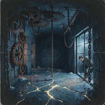 Gritty 1990s German industrial rock instrumental with driving mid-tempo rhythms, heavy distorted guitars, deep electronic pulses, and dark emotional melodies, Blends raw, metallic energy with cinematic gothic orchestration, including haunting strings and powerful choir textures, The atmosphere is dramatic, cold, and intense, evoking themes of inner struggle and rebellion, Germanic rhythm and minor-key tone throughout, edm, Main vocals: Chrissy van Chaos – female (expressive, dramatic, from fragile to powerful rock), Umbra Noctis – male (deep, strong, NDH-like)