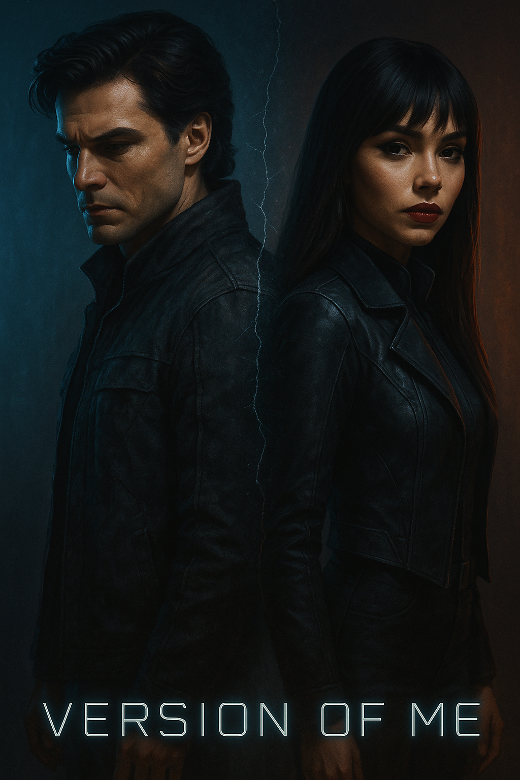 Dark and emotional Synth Rock with industrial and electro influences, designed as a male/female vocal duet, Features heavy distorted electric guitars, punchy electronic drums, gritty electro basslines, and atmospheric analog synth layers, The rhythm is hypnotic and driving, blending electronic precision with raw emotional power, The song explores identity, distance, and transformation through dual perspectives, The male and female vocals alternate between introspective verses and overlapping harmonies in the chorus, creating a haunting tension between cold detachment and longing connection, Perfect for a futuristic, emotionally charged soundscape