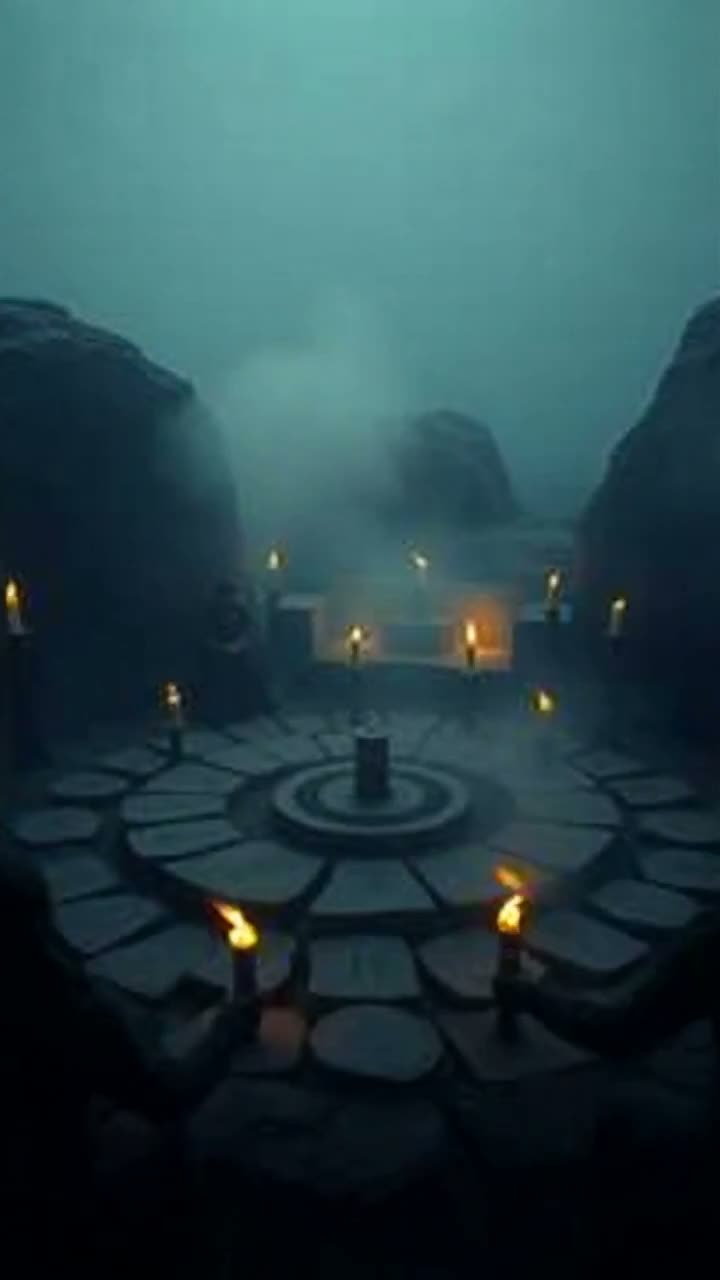 A Nordic ritual folk track led by primal, layered throat chanting in a call-and-response structure among male voices—gravelly, forceful, and imperfect, Deep frame drums set a slow, thunderous pulse (60–75 BPM), interwoven with urgent bone and wood percussion, stomps, fierce claps, and bursts of breathing, The arrangement is stripped: repetitive, ceremonial, and raw, with each section building aggression and density while keeping harmony minimal, Slight timing shifts in the vocals and drums heighten authenticity; the energy feels ancestral, immersive, and unpolished throughout