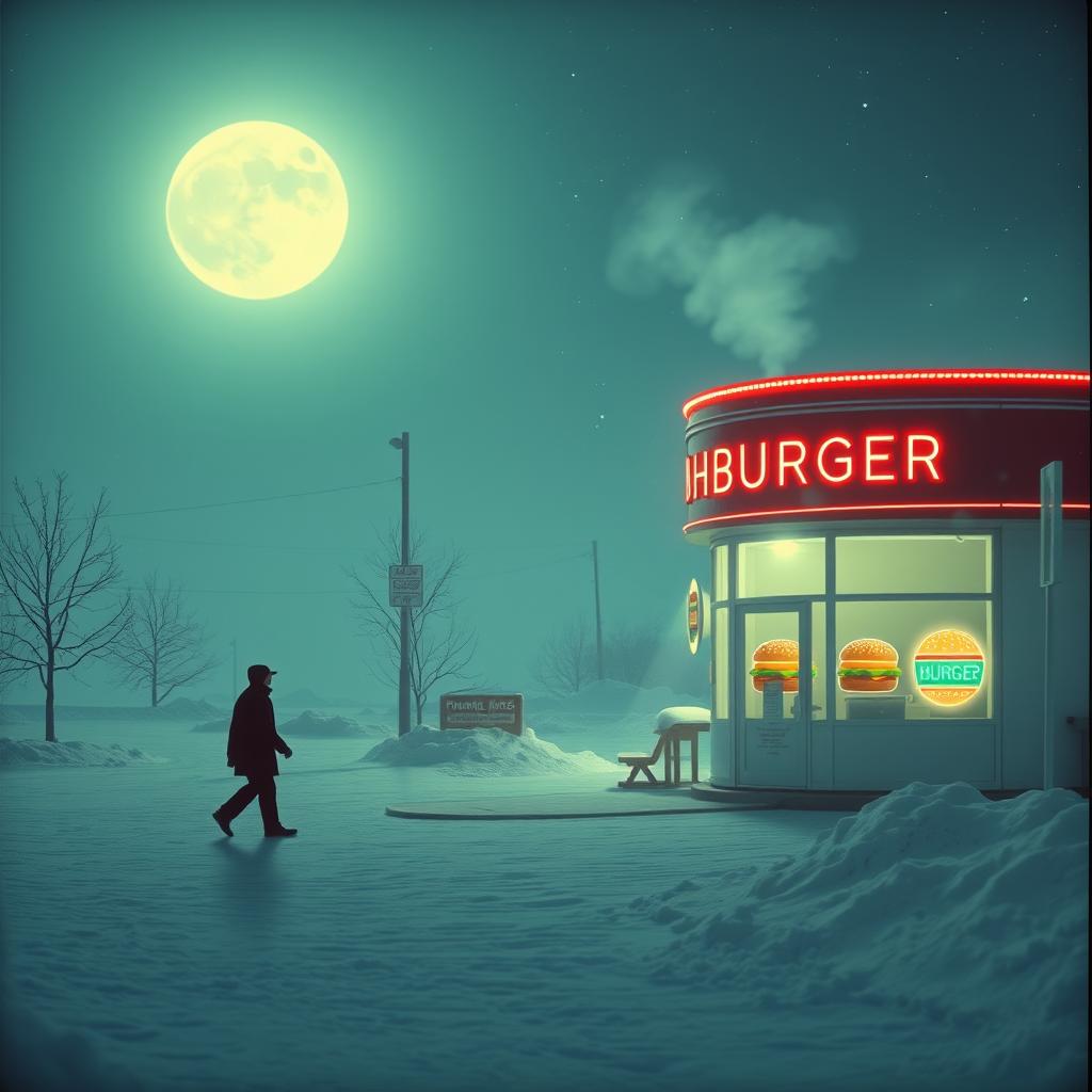 Elegant winter-night cinematic pop + 90s London trip-hop lite (classy, NOT industrial), 88–94 BPM, Dusty brushed/breakbeat-ish kit: brushed snare+rims, deep pocket (no busy hats), Warm round bass + faint vinyl air; minimal clean guitar arps; repeating piano motif (main hook), Strings: tiny glow only (no swells), Ambience ultra-low: snow-wind + distant tire hiss; sound absorbed by snow, NO rain/puddles/café/umbrella, NO heavy drones, NO EDM drop, no big build; chorus intimate, VOCAL: FEMALE only, cute clean “seiso”, close-mic, calm, minimal vibrato, clear English; no runs; NO belting/shouting/rap, THEME: icy dark roads, low visibility; careful 3km drive to burger shop for family dinner; paper-bag warmth; relief home, STRUCTURE: Intro→V1→Pre→Ch→V2→Pre2→Ch→[Instrumental Break NO VOCAL 16–24 bars: piano motif leads, faint guitar+soft strings; pull drums back near end]→Outro, RULE: Chorus lines repeat EXACTLY, End softly, PASTE LYRICS BELOW: