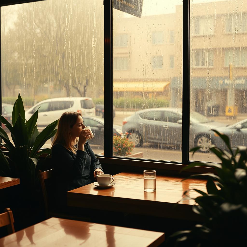 Elegant rainy-city cinematic pop w/ subtle UK touch, 90–94 BPM, restrained & contemplative (NOT hopeful), soft brushed drums + very light muted kick, subdued warm bass, sparse clean guitar arps, gentle repeating piano motif, subtle low strings (no swell), ultra-low rain ambience, NO café warmth/nostalgia, NO dystopian/industrial/heavy drones/EDM drop, chorus intimate & narrow, no dynamic lift, minimal cinematic arrangement, VOCAL female only, transparent clean seiso soprano/mezzo, close-mic, calm, restrained, minimal vibrato, no belting/rap/melisma, clear natural English, THEME quiet March rain, bus window view, low sky, slow umbrellas, muted city, no resolution, optional short piano interlude 8–16 bars same motif, soft fade like rain on glass, PASTE LYRICS BELOW: