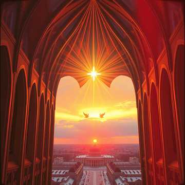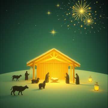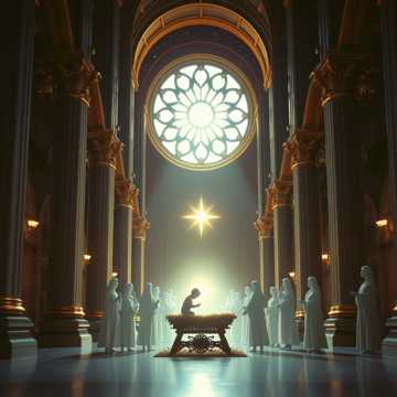 Epic symphonic power metal anthem featuring massive angelic choir with thunderous energy and triumphant glory, Majestic orchestral intro with heavenly trumpets and soaring strings building to explosive guitar-driven verses, Lead vocals powerful and commanding, backed by 100-voice celestial choir singing with overwhelming might and radiance, Each chorus erupts with earth-shaking force - walls of harmonies proclaiming divine victory, drums pounding like heavenly thunder, electric guitars blazing with holy fire, Bridge section builds tension with ethereal choir whispers before unleashing the full glory of heaven in the final chorus, Production style: massive cinematic sound with crystal-clear vocals cutting through dense orchestration, church organ undertones adding sacred grandeur, double-bass drumming driving relentless forward motion, The incarnation proclaimed with both reverence and raw musical power, celebrating Christ's birth as the cosmic event it truly is