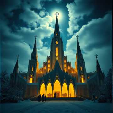 Epic Orchestral Metal Christmas Hymn with Massive Build-up Structure, Female Soprano Lead Vocals with Powerful Vocal Runs, Progressive Intensity Building from Intimate Beginning to Apocalyptic Climax, Cathedral Choir Backing growing stronger with each verse, Cinematic String Section with Soaring Violins and Cellos, Thunder and Lightning Effects intensifying through the song, Crushing Double Bass Drums entering gradually, War Drums and Timpani for climactic moments, Key Change from D major to E major at final verse, Extended Epic Sections with Let it Ring Moments, Dynamic Contrasts between soft intimate passages and crushing heavy sections, 100 BPM building to 110 BPM, Christmas miracle portrayed through sonic journey from humble stable to opened paradise gates, Respectful yet Triumphant, Sacred atmosphere meets orchestral bombast, Cathedral reverb throughout creating massive sacred space