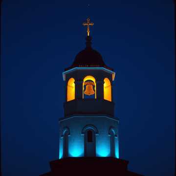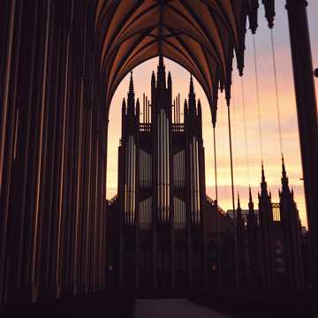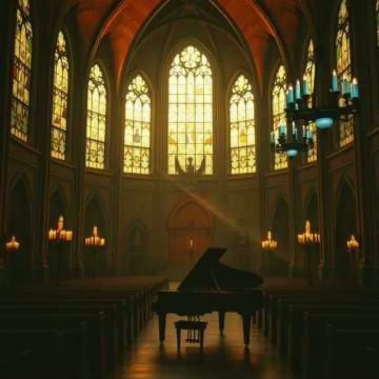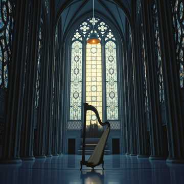 sacred, traditional, orchestral with choral harmonies and harp accents