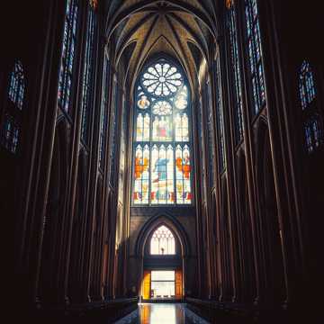 Epic Medieval Orchestral Metal Hymn, Female Vocals with Powerful Medieval Melismatic Runs, Massive Cathedral Choir Arrangements, Gregorian Chant Elements, Thunderous Timpani and War Drums, Cinematic Strings with Crushing Double Bass, Ancient Church Bells, Key Change from D minor to E major, Extended Epic Sections with Let it Ring Moments, Medieval Atmosphere meets Modern Metal Power, Apocalyptic Cathedral Sound, Thunder and Lightning Effects, 110 BPM, Mystical and Triumphant, Latin-German Macaronic Text, Dark Medieval Majesty with Epic Crescendos, Choral Backing throughout