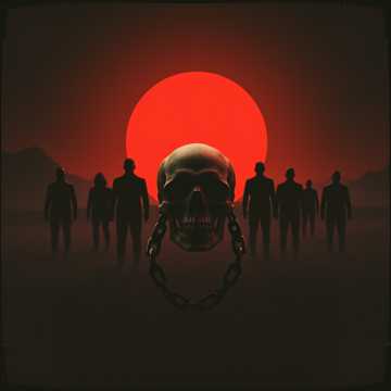 rough male voice, deep male vocals, powerful chorus, heavy metal, dark wave, gloomy, ominous