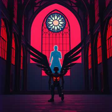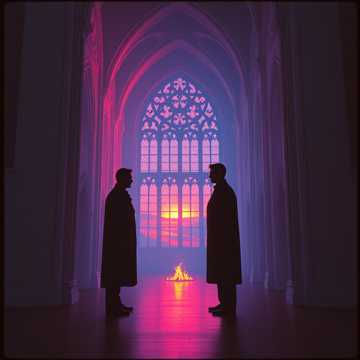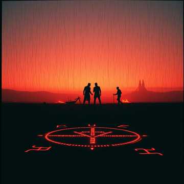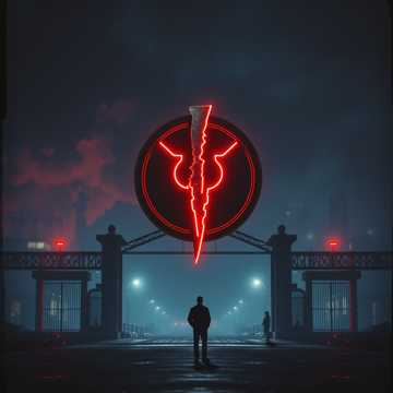 studio recording, clear sound, intense beats, rough male voice, heavy guitar riffs, dark melody, powerful chorus, echoing, synth pop, neon, danger, glam metal, punk band, synthesizer-driven, synthwave, dark, evil