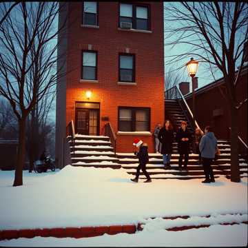 Boom-bap holiday rap, crunchy kick and snare with swinging hats, chopped sleigh-bell loop and warm bass, Male vocals with stacked call-and-response hooks, crowd shouts, and ad-libs, Verses stay tight and rhythmic, chorus explodes with gang vocals, handclaps, and tambourine, Old-school turntable cuts between sections, energy rising into a chant-out ending
