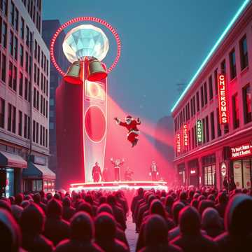 rock, Bright EDM-pop with a festive twist: sidechained synths, sleigh bells on top of the groove, four-on-the-floor kick, bouncy bass, and chopped-vocal hooks, Chorus hits big with stacked gang vocals and claps; verses stay tighter with percussive plucks and glitched fills, High-energy, radio-ready holiday party vibe