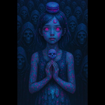 Dark Yamikawaii Trap beat with glitchcore textures, Broken looped vocals, whispered Japanese female voice, The sound of sweet fear, toxic candy, and shimmering digital hallucinations, Echo, reverb, and distortion effects, Cute but unsettling