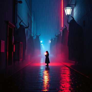 This glam metal hybrid launches with synthwave arpeggios and lush atmospheric pads, quickly joined by punchy funk bass and syncopated guitars, Gothic organ and haunting, minor-key melodies give a dark edge, Retro drum machines drive the groove; the bridge surges with theatrical synth leads and echoing claps before landing in a grooving, enigmatic outro