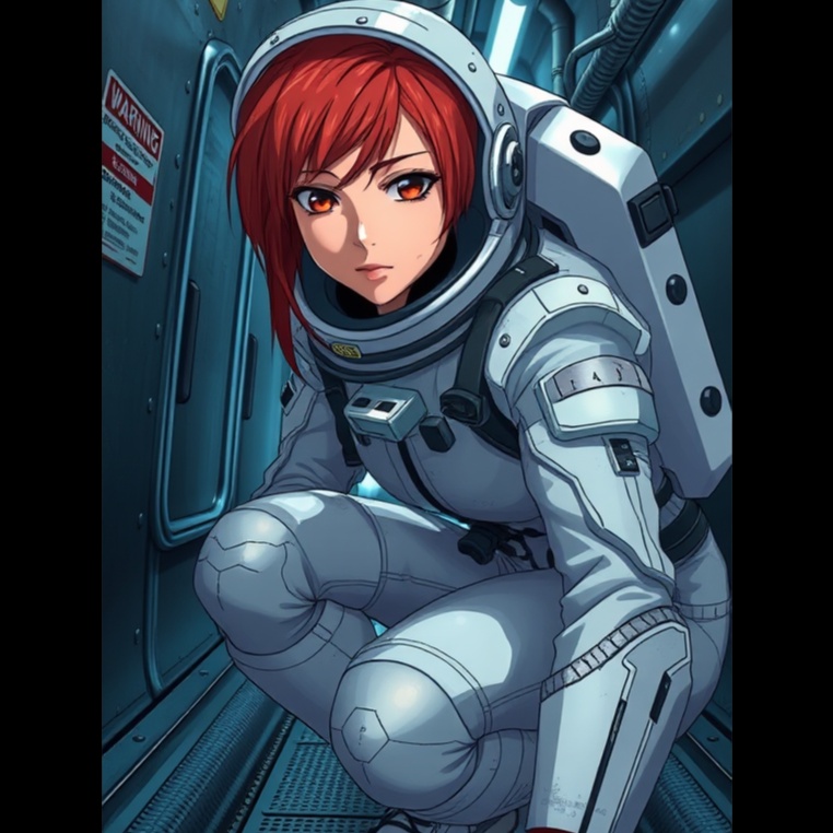 Electronic space funk, Science fiction, saxophone, space travel vibes, rap, adventurous, proud, self ironic, female high voice, anime, ‑male voice, ‑singing