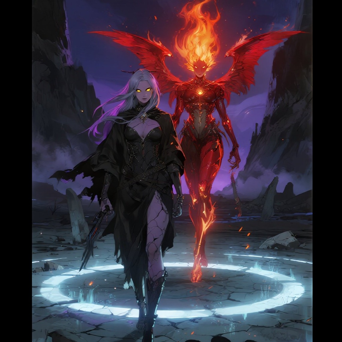 Dark ritual electro-industrial track in the style of Nyxa Virelith, Slow-building intro with distorted whispers, sub-bass drones, metallic pulses and glitch ambience, Female vocal, calm but threatening, controlled rage, anti-hero presence, Tempo mid-slow, heavy kick, ritual percussion, cold synth layers, industrial textures, void-like reverb, Chorus expands with deep harmonies and cinematic synths, no epic heroism, restrained power, Bridge minimal, almost spoken, with glitch breaks and silence tension, Mood: controlled darkness, inner corruption sealed by will, opposition to Crimson fire through void and rupture, Dark fantasy sci-fi fusion, synthpunk ritual aesthetic, no pop elements, no cheese, emotional weight over aggression