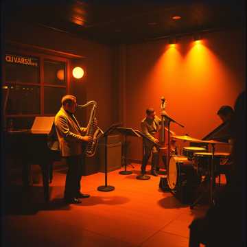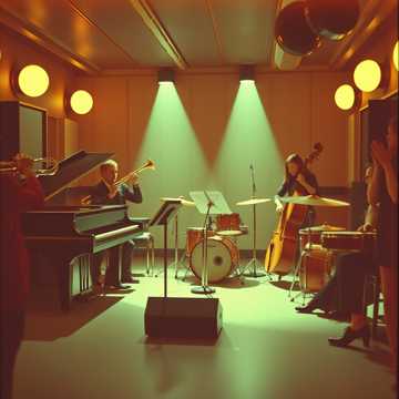 * Authentic **1960s jazz club vibe** with swinging grooves, * Each instrument must have a **dedicated solo section**: piano solo, sax solo, trumpLive bar ambience: quiet chatter, glasses, subtle room tone, Occasional playful shouts between musicians during energetic sections, Audience reactions: warm applause or excited ovations after each solo, The overall sound should feel like a vintage 1967 jazz evening, full of life, groove, and soulful instrumental storytelling
