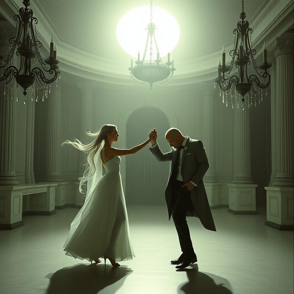 Theme: My kidnapped Lady dances with the Grey Gentleman, Create a **1967-style jazz big band instrumental**, performed live in a lively, crowded bar, The arrangement features **piano, double bass, drums, brass section, saxophones, trumpets, trombones**, and additional jazz ensemble instruments, **Mood & Energy Profile:**