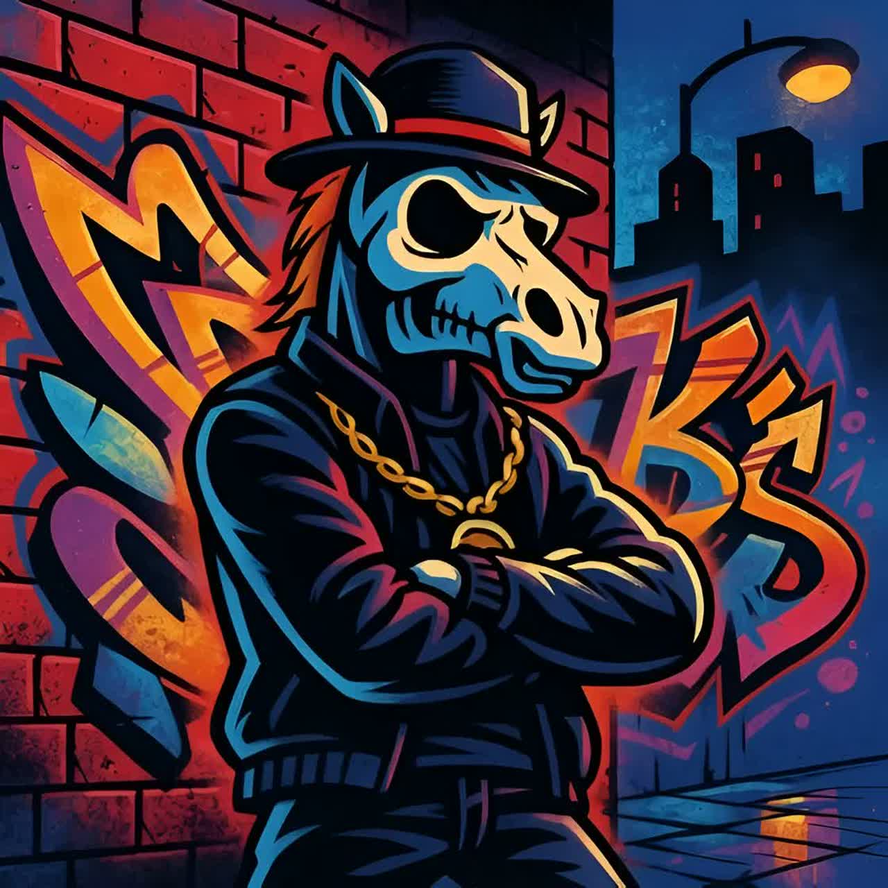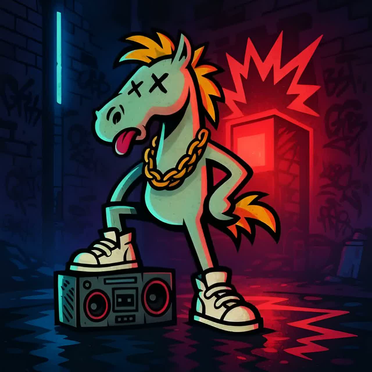 A high-attitude throwback to mid-80s street rap built on pounding kick–snare patterns, tight handclaps, and bold brass stabs, The flow is loud, confident, and percussive, with call-and-response crowd energy and rhythmic spoken punchlines that feel born from a gymnasium pep rally fused with a block-party cipher, ‑trap, ‑drill, ‑cloud rap, ‑hyperpop