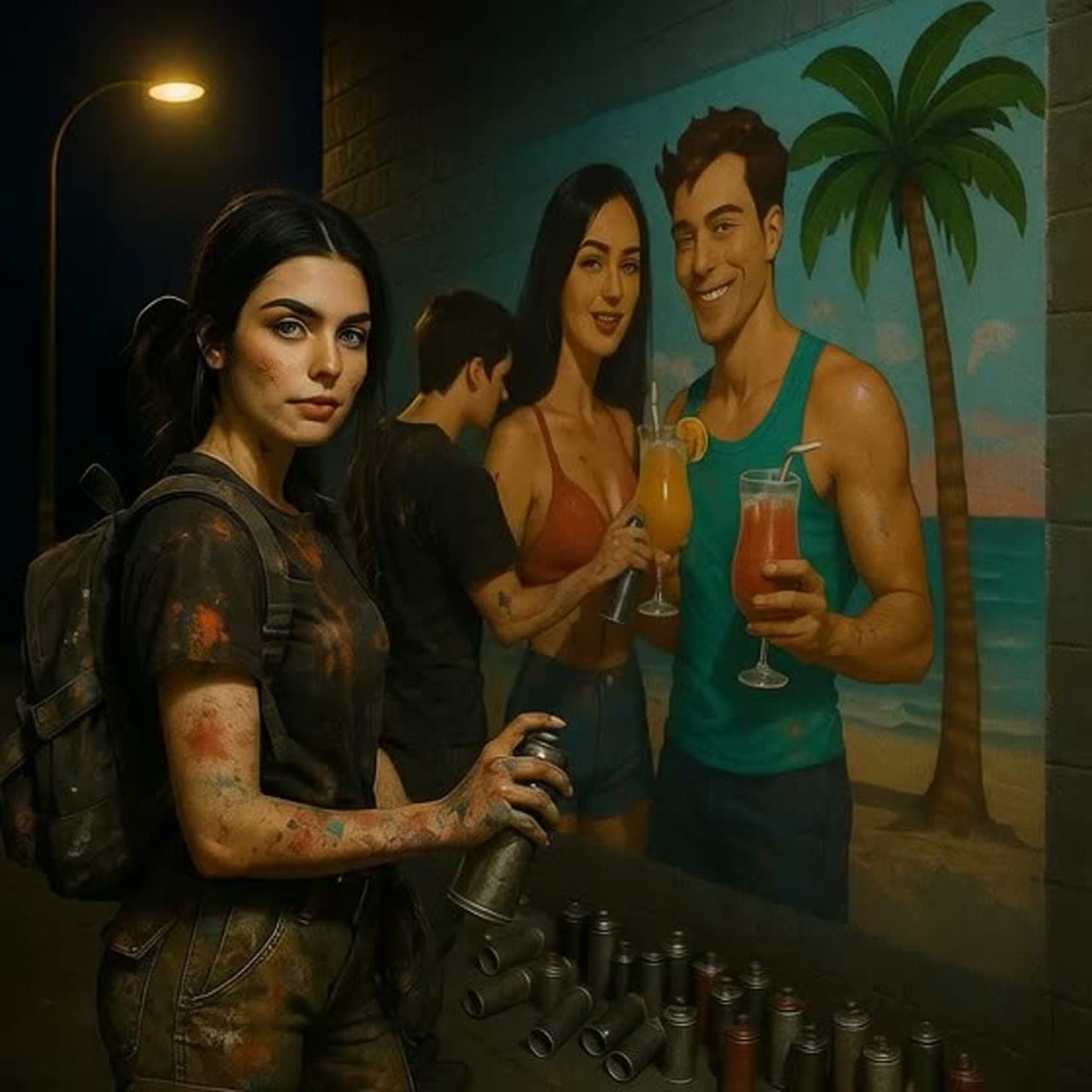 Shoegaze sombre porté par une guitare saturée de reverb et delay sur un motif pentatonique hypnotique, Piano cristallin tisse en arrière-plan, basse slap ample, batterie vive et contrastée, violon et cello, Au climax, mélange rock punk et dream pop, textures suspendues, tension maximale
