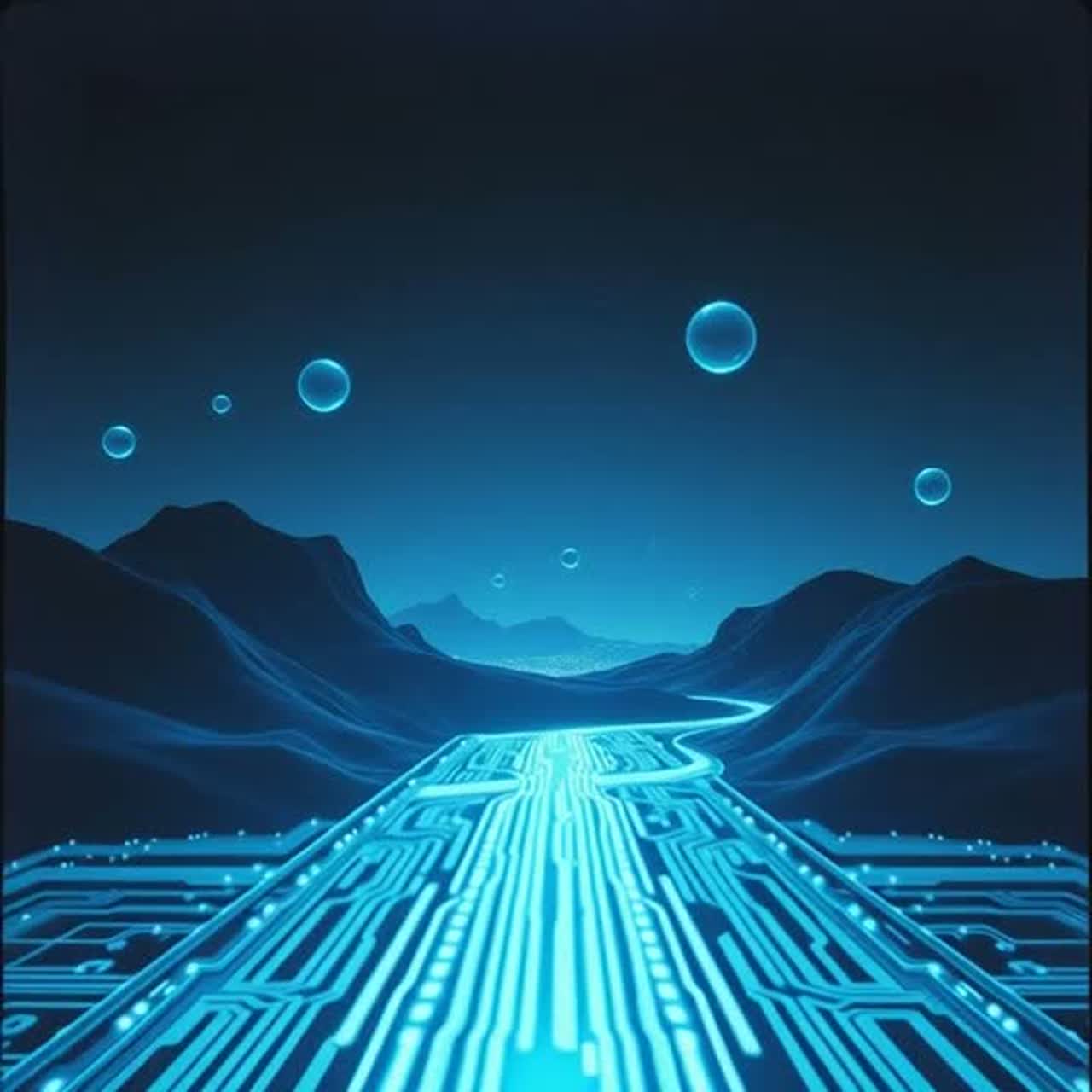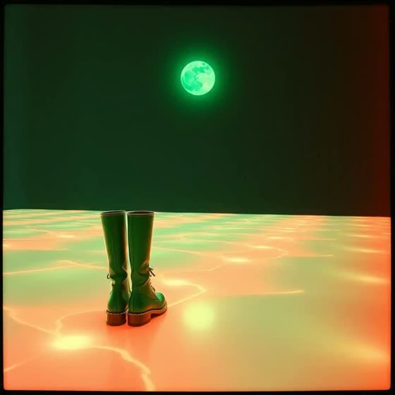 Begin with soft ambient 8-bit pads, VHS-style tape warmth