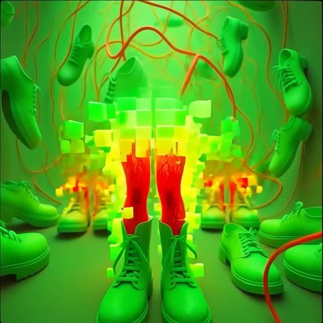 style of: darksynth + glitch-hop + industrial rap/rock (liminal cyber-noir energy), 150 BPM, 4/4; huge analog bass + 808 sub, tight punchy drums (gated snare, hard kicks, crisp hats), crunchy muted guitar chugs, icy arps, short glitch/stutter fills and quick tape-stop drops, Vocals: confident rap/rock lead with eve “system-voice” layer (radio-filter/vocoder whispers) for ad-libs; feature a dry close-mic spoken punchline: “The shoes, right? The shoes are TRAGIC, ” Arrangement: boot-up intro → tight verse bounce → big hook chorus with stadium claps → darker minimal bridge (sub + whispers) → final chorus biggest, Mix: modern loud master, wide choruses / tight mono verses, heavy sidechain, clean low-end with a faint VHS grit texture