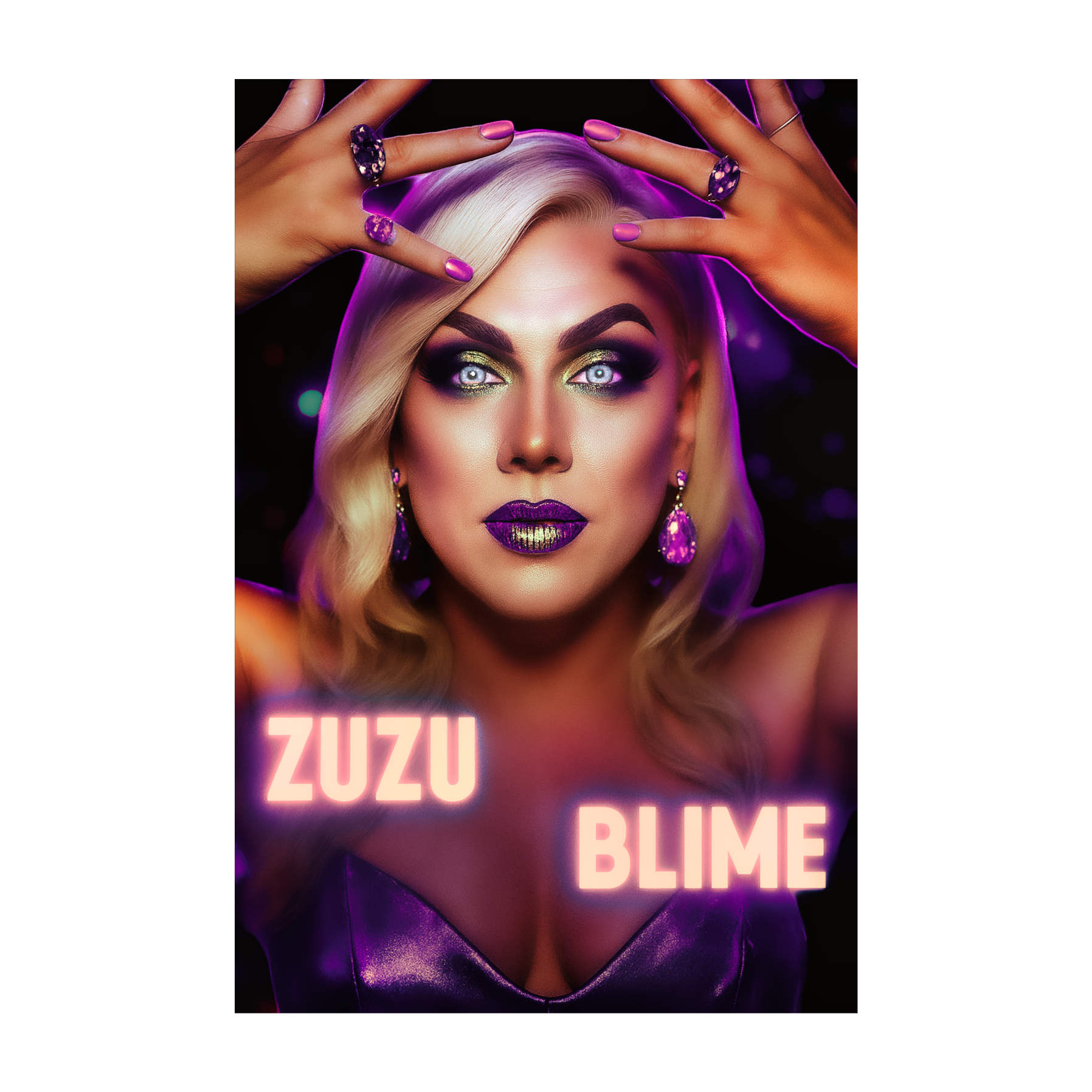 This high-energy drag queen hip-hop mixed with very electronic hard dance anthem kicks off with punchy 808s, syncopated snares, and a bold bassline, Verses feature crisp percussive edits and flamboyant synth stabs, shifting rhythms to spotlight the fierce, campy rap flow, Ballroom samples and dramatic vocal ad-libs boost the theatrical, unapologetic vibe, with breaks for male vogue-inspired and Drag Queen-inspired chants and explosive drops before the final dazzling outro, Up to 4 minutes, ‑Zuzu Blime: Non-binary, ‑not a clown