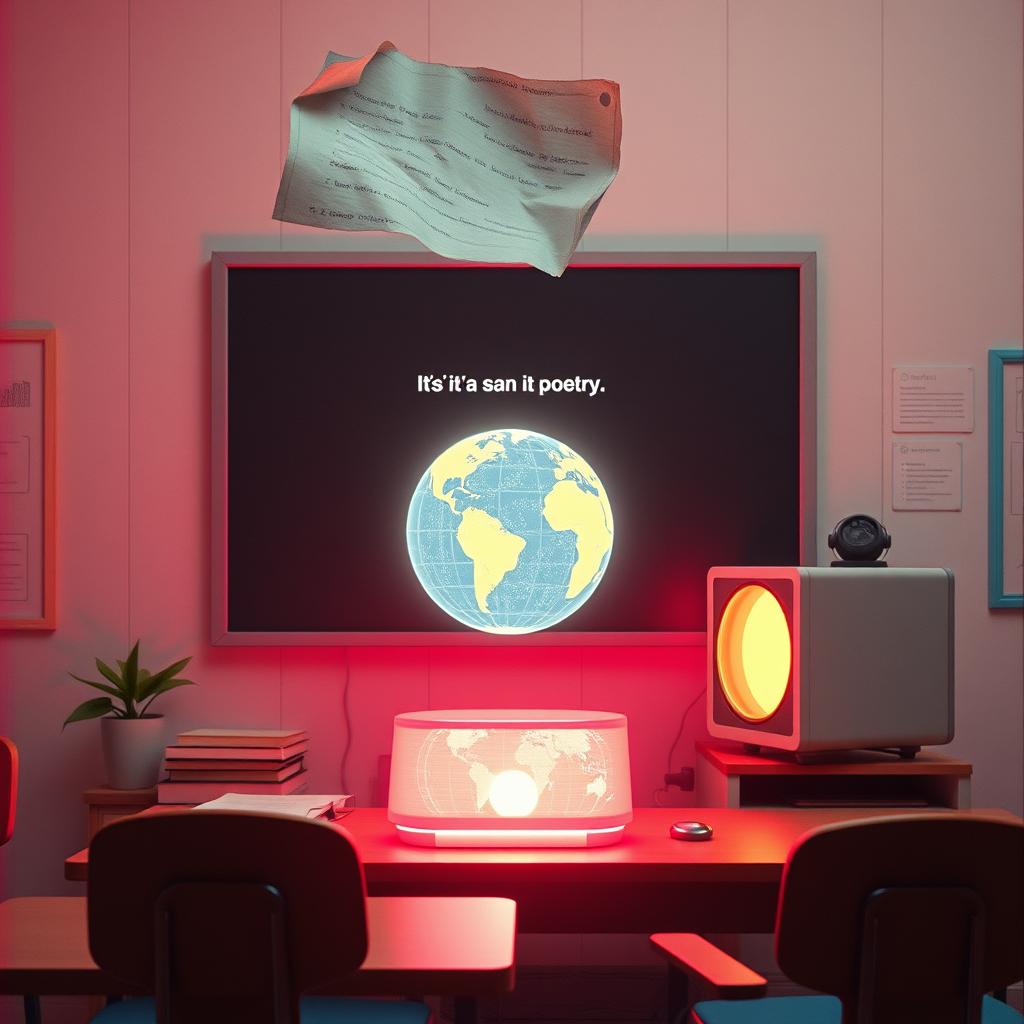 Indie pop-rock, mid-tempo groove, male vocals; dry, close-mic verses over tight drums and warm bass, choruses explode with doubled vocals, fuzzy guitars and synth pads, Subtle vocoder layers underline the AI theme; bridge strips back to kick, claps and a single guitar before a final, anthemic hook with gang-style backing vocals