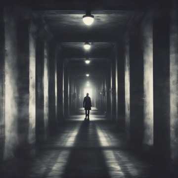 Dark ambient soundscape, foreboding iron resonance, sinister echoes, haunting emptiness, oppressive atmosphere, nightmarish depths, malevolent presence, restless shadows