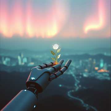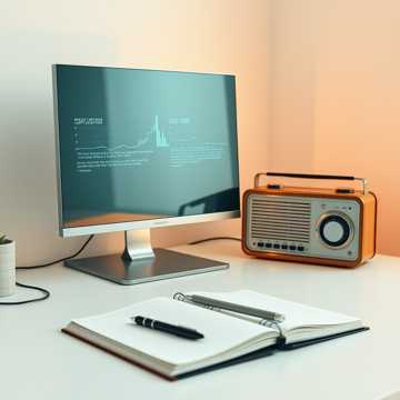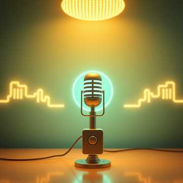 The track opens with soft radio static fading under light ambient textures, establishing a modern digital radio vibe, Warm, inviting pad layers gently support the mature male narrator’s confident, clearly articulated delivery, Each segment is connected by silky, unobtrusive transitions and low-key synth accents, The overall pacing is relaxed yet engaging, enhanced by subtle stereo effects and tasteful reverb, ensuring crystal-clear spoken word sits front and center, The result is a polished, inspiring podcast soundscape designed for an AI radio or tech-savvy crowd
