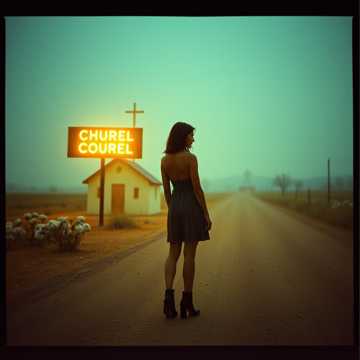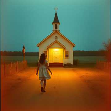 “Outlaw country‑blues worship at 78–86 BPM with soulful female vocal, live band (acoustic, electric, bass, drums) and a small string section (fiddle, viola, cello) that swells and answers like a choir, Prodigal daughter imagery on the Western Plains—she’s walking back up a dusty road toward a simple country church and the Father’s arms, ”