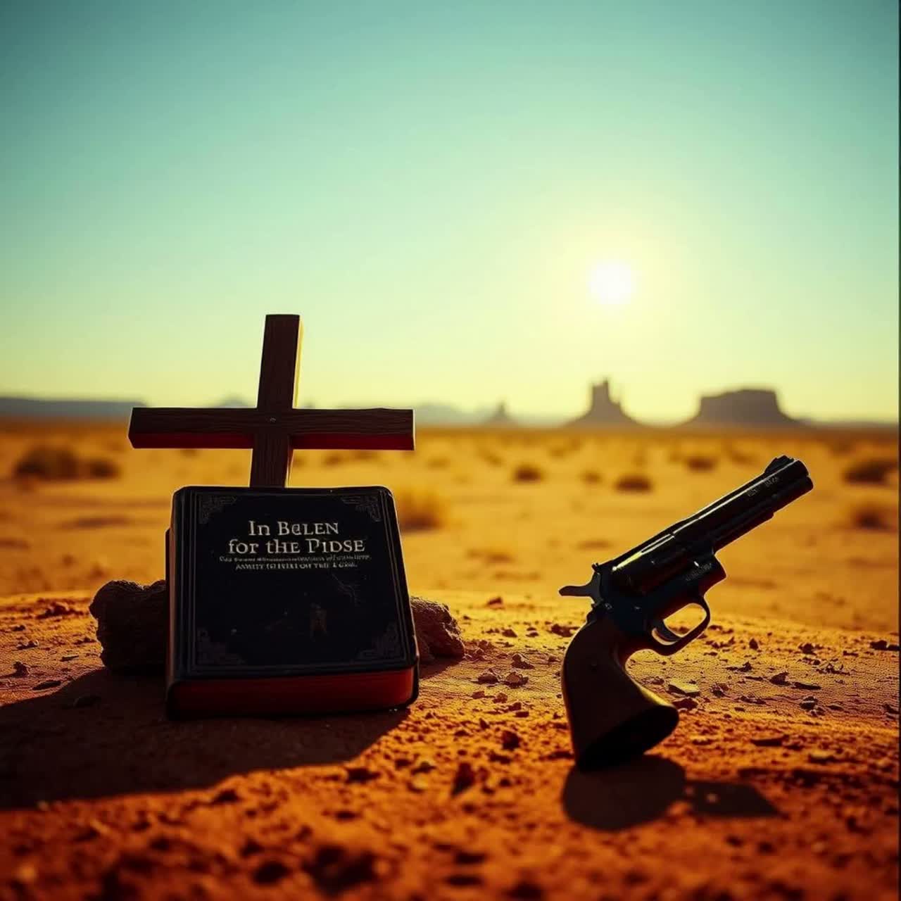“Dark outlaw gospel / Southern‑Gothic worship with gritty male vocal at 74–82 BPM, slow country‑blues groove, roomy drums, acoustic and electric guitars, soft organ, and cinematic reverb, Story‑driven lyric about carrying a gun, living on the edge, and finally laying the weapon down at the feet of Jesus on the Western Plains, ”
