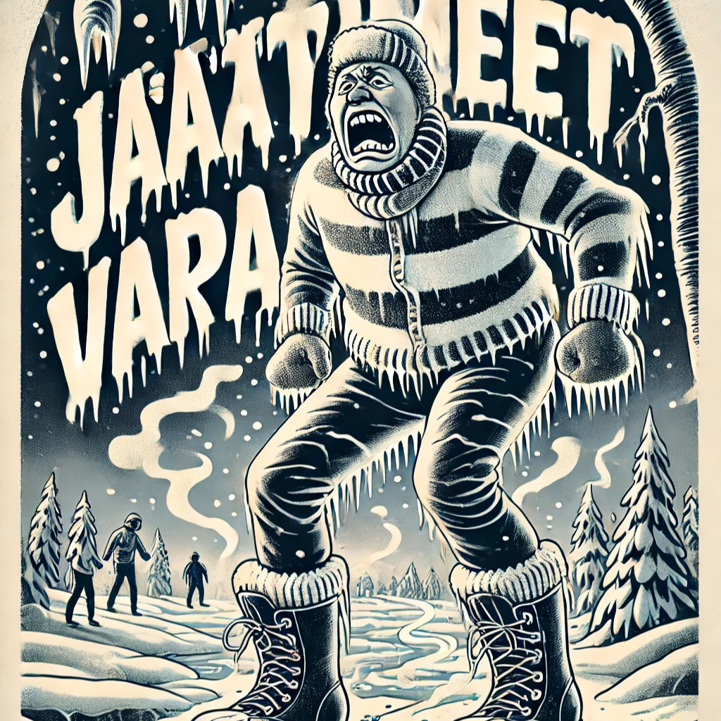 Finnish rap, aggressive flow, dark humor, trap beats, icy and metallic synths, heavy bassline, fast-paced delivery, cold and dramatic atmosphere, energy-filled with humorous undertones, winter-inspire