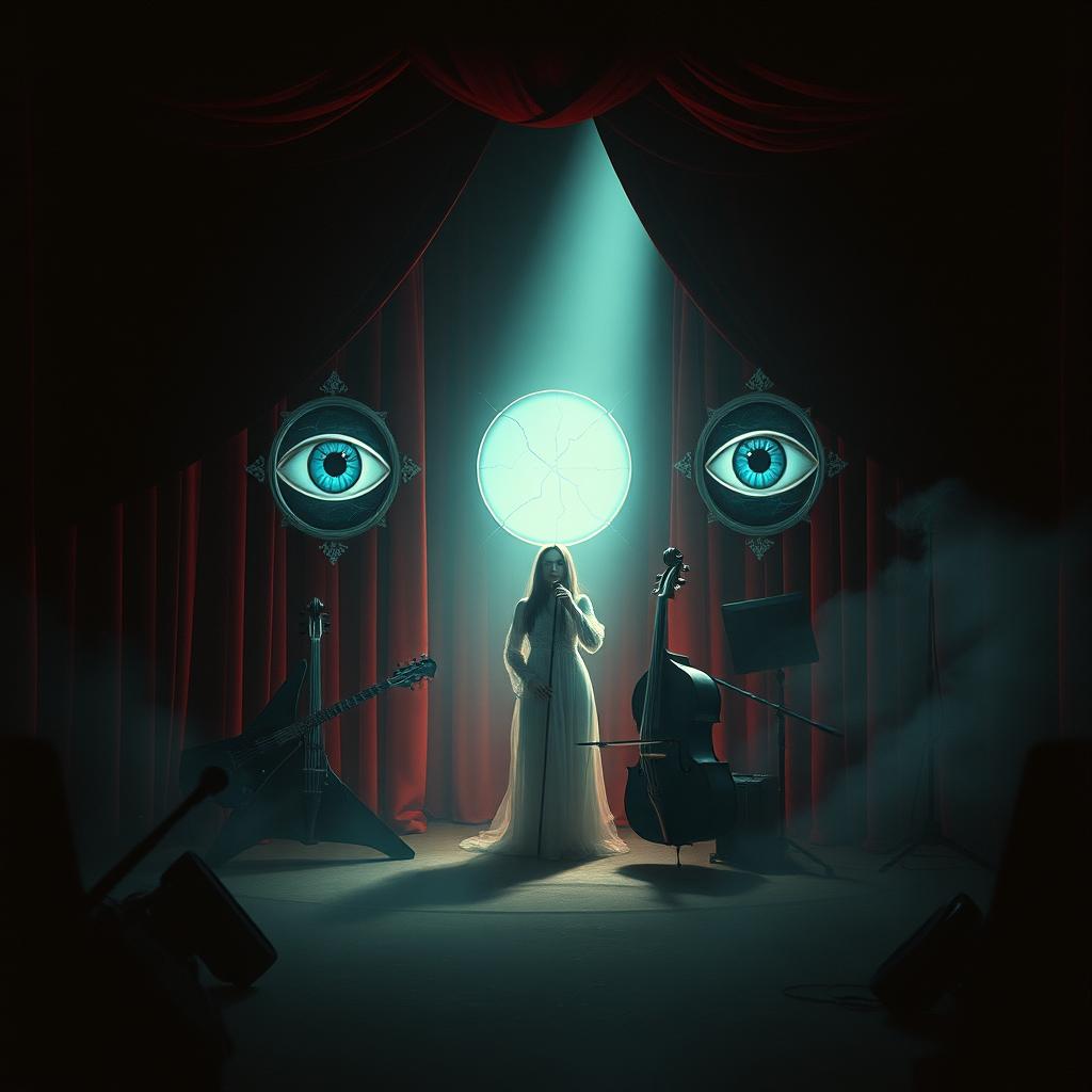 The song opens in 6/8 with a haunting dark-alt-pop cello melody, backed by distant synth layers and sparse, heavily-reverbed drums, It crescendos into jagged post-hardcore guitars and intricate polyrhythms, Tenor female vocals with vibrant vibrato lead, interwoven with airy alto harmonies in head voice, generating eerie melodic tension and pronounced dynamic shifts, Transition sections feature experimental guitar riffs, cello glissandos, and atmospheric breakdowns, allowing the vocals to intensify, Cello solos bridge choruses and verses, while the bridge shifts to a theatrical, haunting character, remaining curious and serious in tone, The cello carries the outro, fading to silence