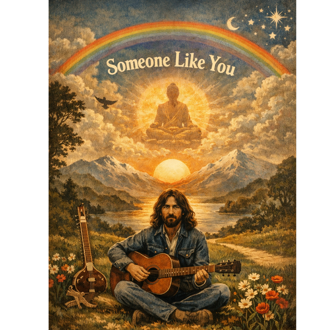 The song opens in lilting 6/8 with sitar and melodic slide guitar weaving hypnotic lines over warm organ, melodic bass, and steady drums, all elevated by lush three-part harmonies, Verses lighten with airy arpeggiated guitar, rich organ pads, and agile, drone-following bass, The middle 8 brings fresh vocal harmonies, transitioning to an expressive slide guitar-led instrumental, The outro layers sitar, reversed guitar textures, tambura drone whispers, and distant vocal fragments, all gradually dissolving into a fading sitar riff and subtle reverse tape effects, sustaining a meditative, introspective late-period Beatles-inspired Indian psychedelic rock mood