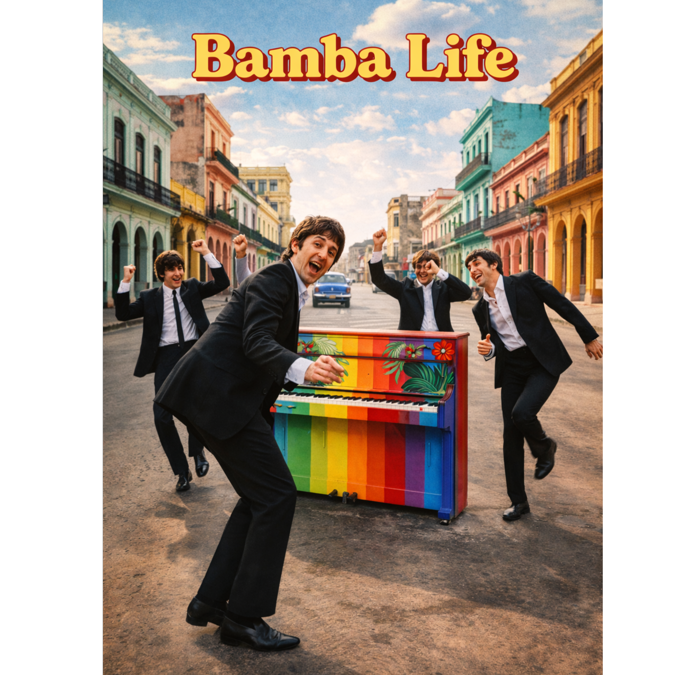 Pop band of Sixties, piano, drum, running bass, lead and