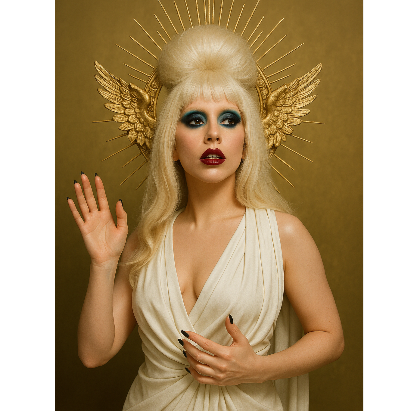 Electropop, Synthpop, Dancepop, Glam Rock, Italo Disco, Symphonic Pop, Anthem Rock, Orchestral brass, heavy tom, kick drum, war drum, church choir background grandeur, Royal